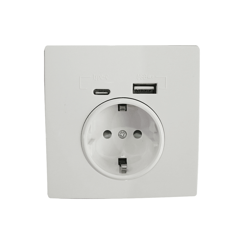 Deze wandcontactdoos beschikt naast een netsnoeraansluiting ook een USB-A en USB-C-aansluiting. Met de USB-A en USB-C-aansluiting sluit je eenvoudig alle apparatuur waaronder, mobiele telefoons, tablets, smartwatches en andere gadgets aan op het stroomnet. De wandcontactdoos bestaat uit wit polycarbonaat en levert via de USB-aansluiting 15W – 2100ma. De maximale output van de contactdoos is maximaal 16A – 3500W. De afmetingen van de multifunctionele contactdoos zijn 86x86mm.